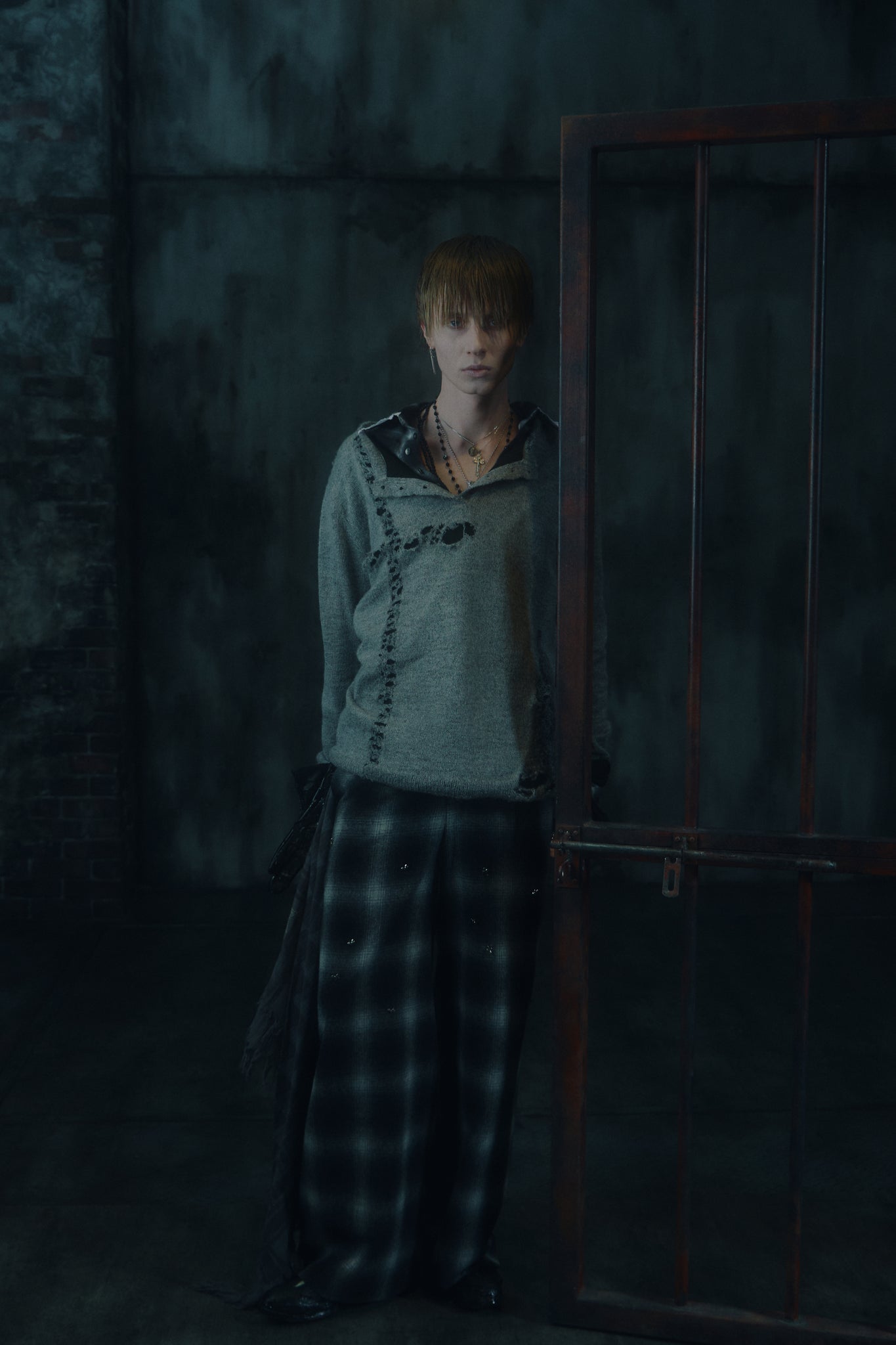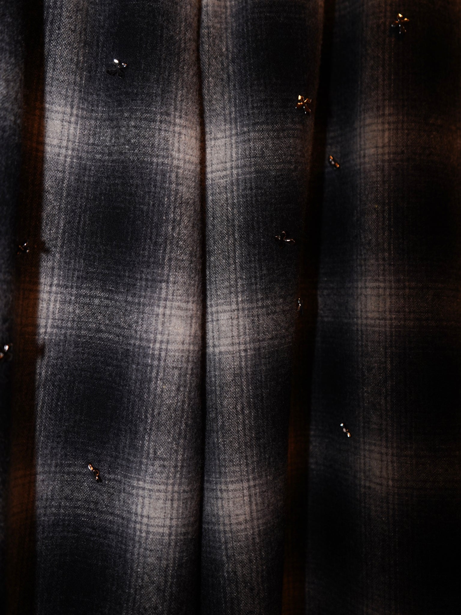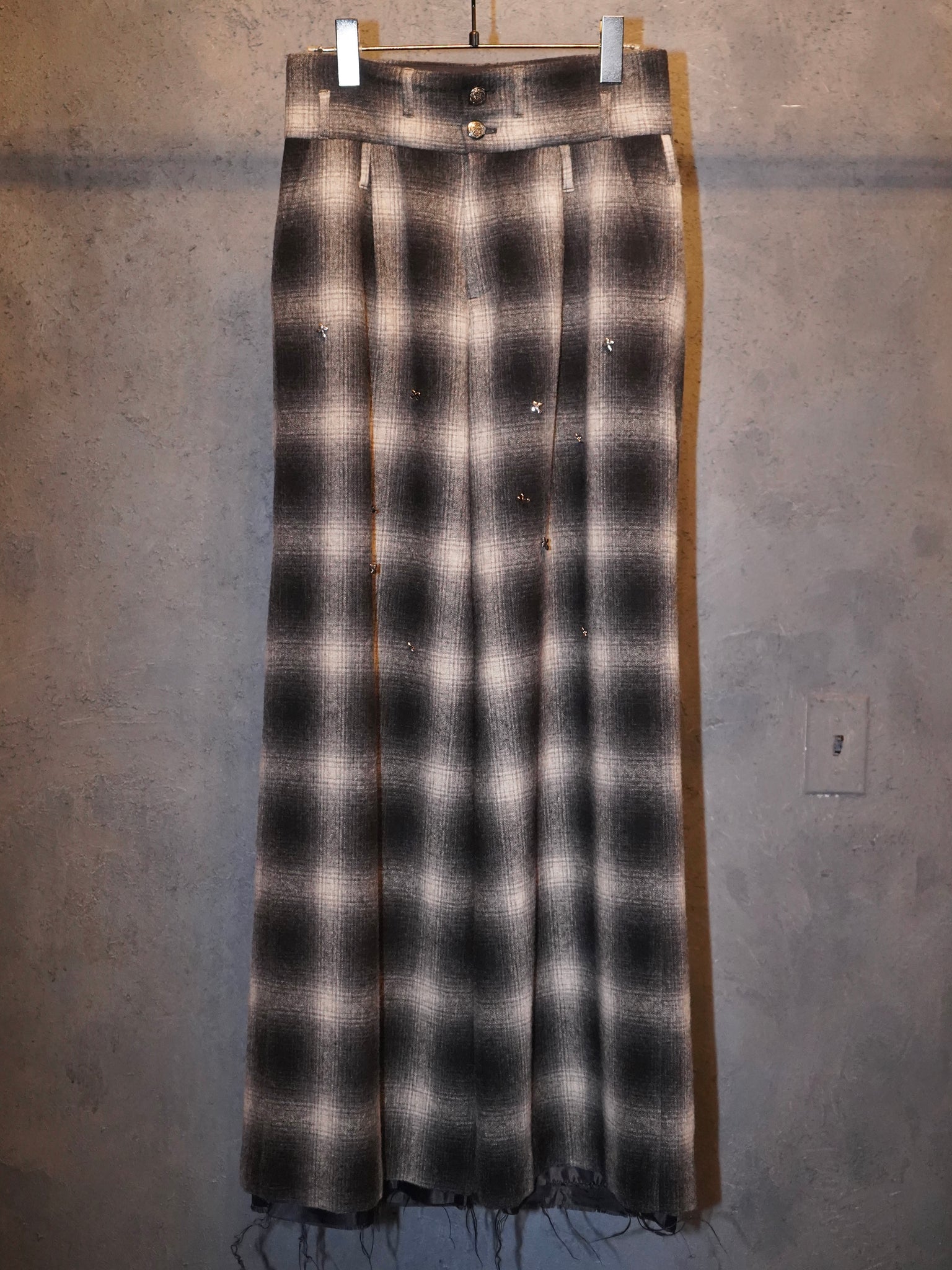 Detail:クロスのメタル装飾が不規則に配置されたオンブレチェックパンツ。